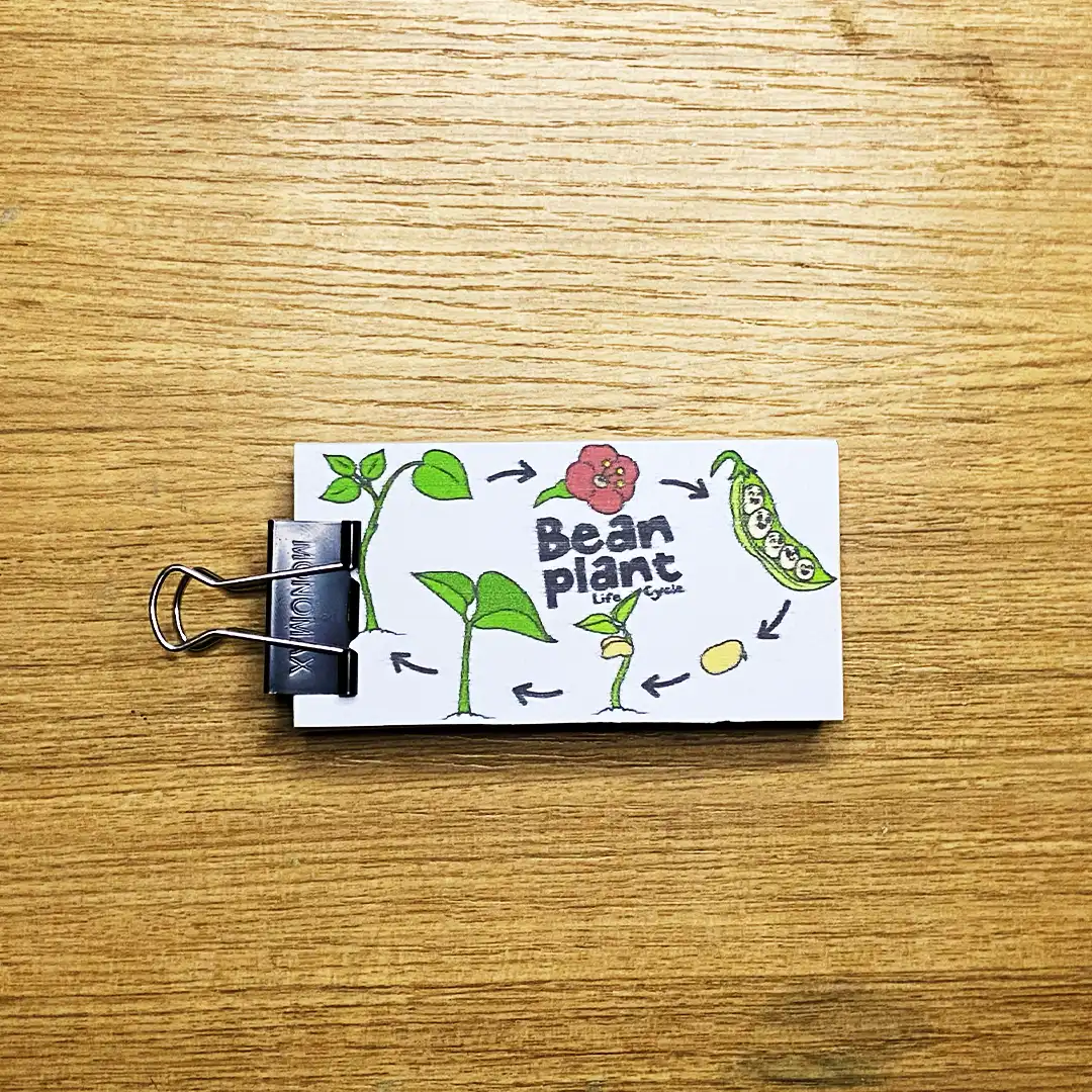 Watch as your child creates their own animated cartoon illustrating the bean plant life cycle. This DIY flipbook beautifully shows each of the life cycle stages of a bean plant, from a tiny seed to a mature plant with seed pods. It’s a fun way to understand the Green Bean Life Cycle Development and makes for a fantastic science activity.